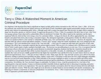 Terry v. Ohio: A Watershed Moment in American Criminal Procedure. (2023, Dec 04). Retrieved from https://hub.papersowl.com/examples/terry-v-ohio-a-watershed-moment-in-american-criminal-procedure/