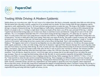 Texting While Driving: A Modern Epidemic. (2024, Sep 17). Retrieved from https://hub.papersowl.com/examples/texting-while-driving-a-modern-epidemic/
