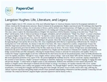 Langston Hughes: Life, Literature, and Legacy. (2021, Apr 29). Retrieved from https://hub.papersowl.com/examples/thank-you-maam-characters/