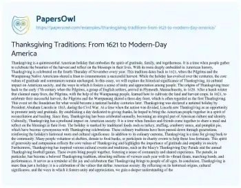 Thanksgiving Traditions: From 1621 to Modern-Day America. (2025, Mar 31). Retrieved from https://hub.papersowl.com/examples/thanksgiving-traditions-from-1621-to-modern-day-america/