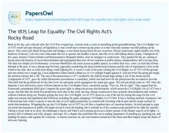 The 1875 Leap for Equality: The Civil Rights Act's Rocky Road. (2024, Feb 27). Retrieved from https://hub.papersowl.com/examples/the-1875-leap-for-equality-the-civil-rights-acts-rocky-road/