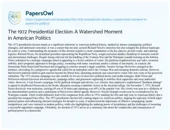 The 1972 Presidential Election: A Watershed Moment in American Politics. (2024, Feb 27). Retrieved from https://hub.papersowl.com/examples/the-1972-presidential-election-a-watershed-moment-in-american-politics/