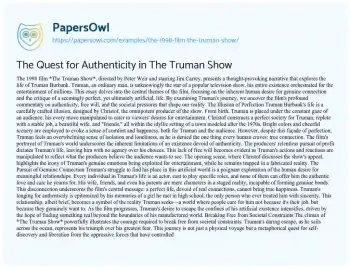 The Quest for Authenticity in The Truman Show. (2019, Mar 03). Retrieved from https://hub.papersowl.com/examples/the-1998-film-the-truman-show/