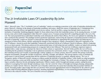 The 21 Irrefutable Laws Of Leadership By John Maxwell. (2024, May 01). Retrieved from https://hub.papersowl.com/examples/the-21-irrefutable-laws-of-leadership-by-john-maxwell/