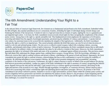 The 6th Amendment: Understanding Your Right to a Fair Trial. (2024, May 21). Retrieved from https://hub.papersowl.com/examples/the-6th-amendment-understanding-your-right-to-a-fair-trial/