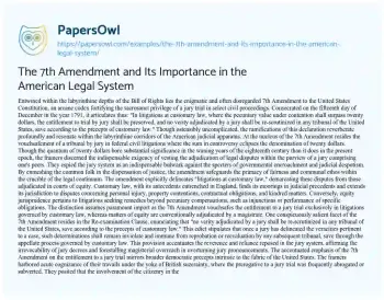 The 7th Amendment and Its Importance in the American Legal System. (2024, May 21). Retrieved from https://hub.papersowl.com/examples/the-7th-amendment-and-its-importance-in-the-american-legal-system/