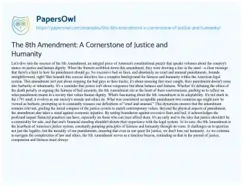 The 8th Amendment: A Cornerstone of Justice and Humanity. (2024, Mar 01). Retrieved from https://hub.papersowl.com/examples/the-8th-amendment-a-cornerstone-of-justice-and-humanity/
