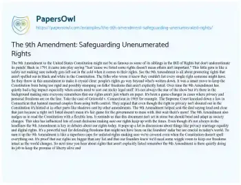 The 9th Amendment: Safeguarding Unenumerated Rights. (2024, Jul 06). Retrieved from https://hub.papersowl.com/examples/the-9th-amendment-safeguarding-unenumerated-rights/