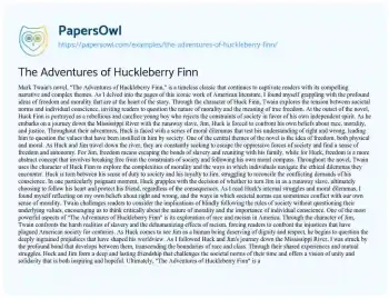 The Adventures of Huckleberry Finn. (2025, Oct 22). Retrieved from https://hub.papersowl.com/examples/the-adventures-of-huckleberry-finn/