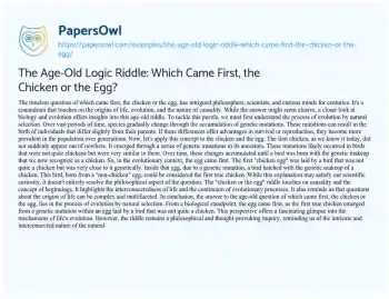The Age-Old Logic Riddle: Which Came First, the Chicken or the Egg?. (2024, Feb 01). Retrieved from https://hub.papersowl.com/examples/the-age-old-logic-riddle-which-came-first-the-chicken-or-the-egg/