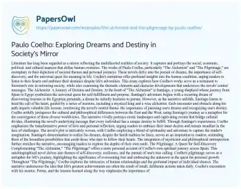 Paulo Coelho: Exploring Dreams and Destiny in Society's Mirror. (2019, Jan 24). Retrieved from https://hub.papersowl.com/examples/the-alchemist-and-the-pilgrimage-by-paulo-coelho/