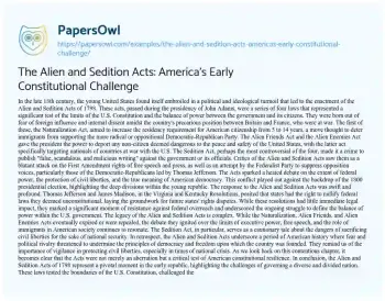 The Alien and Sedition Acts: America's Early Constitutional Challenge. (2024, Feb 27). Retrieved from https://hub.papersowl.com/examples/the-alien-and-sedition-acts-americas-early-constitutional-challenge/