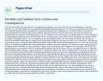 the Alien and Sedition Acts: Context and Consequences. (2024, May 12). Retrieved from https://hub.papersowl.com/examples/the-alien-and-sedition-acts-context-and-consequences/