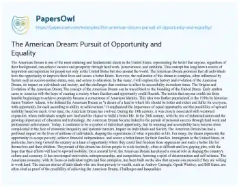 The American Dream: Pursuit of Opportunity and Equality