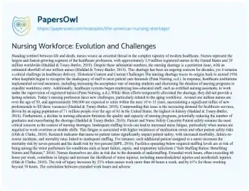 Nursing Workforce: Evolution and Challenges. (2021, Oct 16). Retrieved from https://hub.papersowl.com/examples/the-american-nursing-shortage/