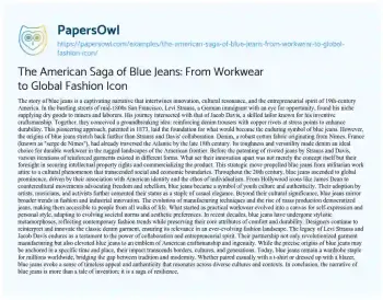 The American Saga of Blue Jeans: From Workwear to Global Fashion Icon. (2024, Jun 28). Retrieved from https://hub.papersowl.com/examples/the-american-saga-of-blue-jeans-from-workwear-to-global-fashion-icon/