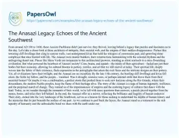 The Anasazi Legacy: Echoes of the Ancient Southwest. (2024, Mar 01). Retrieved from https://hub.papersowl.com/examples/the-anasazi-legacy-echoes-of-the-ancient-southwest/