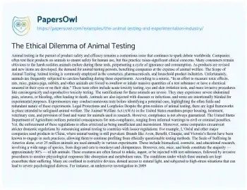 The Ethical Dilemma of Animal Testing. (2020, Apr 27). Retrieved from https://hub.papersowl.com/examples/the-animal-testing-and-experimentation-industry/