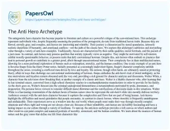 The Anti Hero Archetype. (2024, Apr 29). Retrieved from https://hub.papersowl.com/examples/the-anti-hero-archetype/