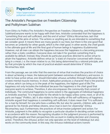 The Aristotle's Perspective on Freedom Citizenship and PolityImam Subkhan. (2020, Mar 22). Retrieved from https://hub.papersowl.com/examples/the-aristotles-perspective-on-freedom-citizenship-and-polityimam-subkhan/