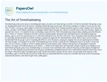 The Art of Foreshadowing. (2024, Mar 12). Retrieved from https://hub.papersowl.com/examples/the-art-of-foreshadowing/