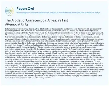 The Articles of Confederation: America's First Attempt at Unity. (2024, Jun 17). Retrieved from https://hub.papersowl.com/examples/the-articles-of-confederation-americas-first-attempt-at-unity/