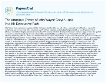 The Atrocious Crimes of John Wayne Gacy: A Look into His Destructive Path. (2024, May 12). Retrieved from https://hub.papersowl.com/examples/the-atrocious-crimes-of-john-wayne-gacy-a-look-into-his-destructive-path/