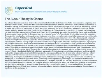 The Auteur Theory in Cinema. (2024, Mar 25). Retrieved from https://hub.papersowl.com/examples/the-auteur-theory-in-cinema/