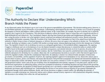 The Authority to Declare War: Understanding Which Branch Holds the Power. (2024, Jun 17). Retrieved from https://hub.papersowl.com/examples/the-authority-to-declare-war-understanding-which-branch-holds-the-power/