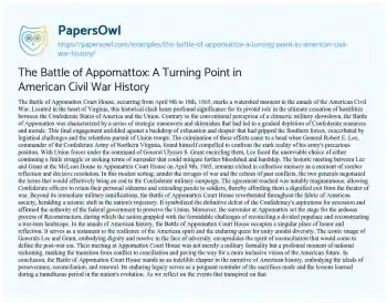 The Battle of Appomattox: A Turning Point in American Civil War History. (2024, Jun 17). Retrieved from https://hub.papersowl.com/examples/the-battle-of-appomattox-a-turning-point-in-american-civil-war-history/