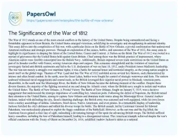 The Significance of the War of 1812. (2021, Apr 10). Retrieved from https://hub.papersowl.com/examples/the-battle-of-new-orleans/