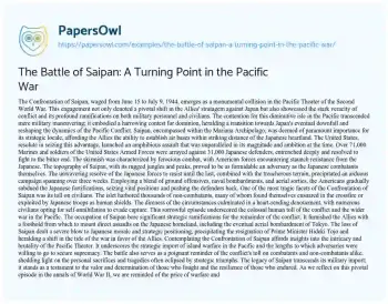 The Battle of Saipan: A Turning Point in the Pacific War. (2024, Mar 01). Retrieved from https://hub.papersowl.com/examples/the-battle-of-saipan-a-turning-point-in-the-pacific-war/