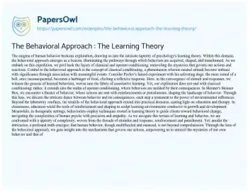 The Behavioral Approach : The Learning Theory. (2024, Apr 22). Retrieved from https://hub.papersowl.com/examples/the-behavioral-approach-the-learning-theory/