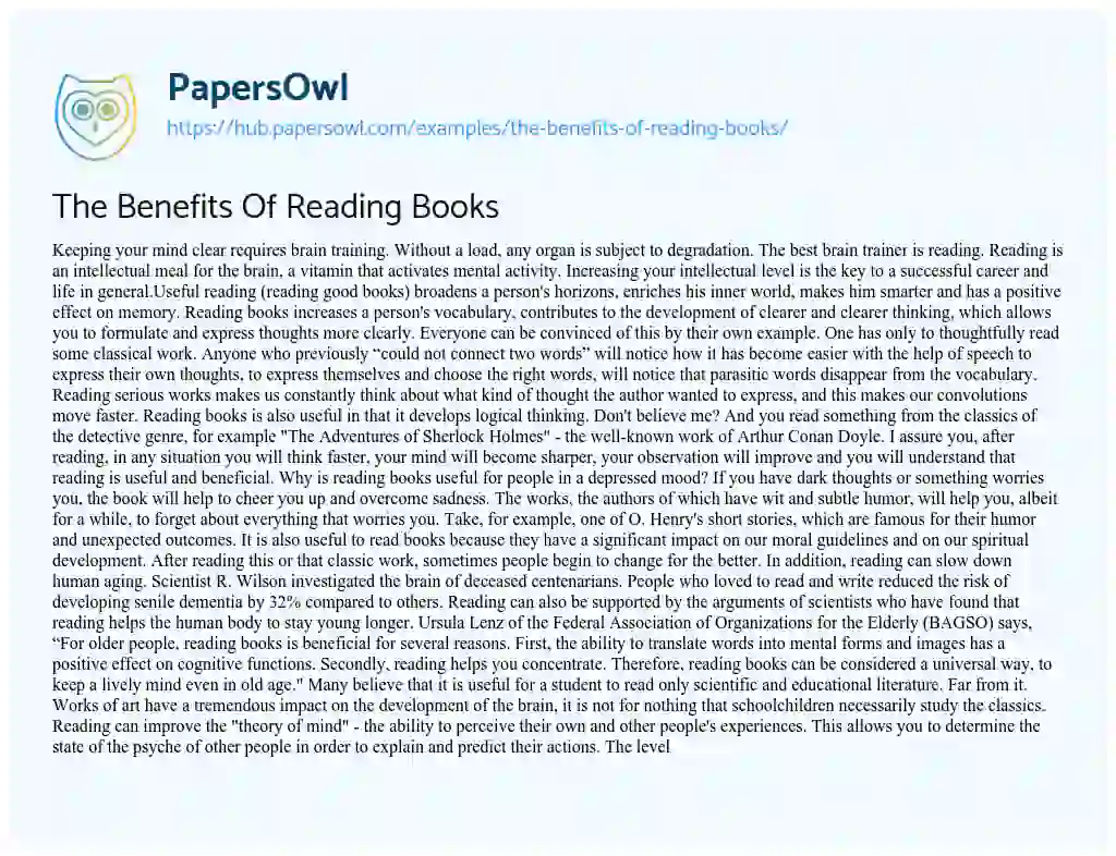 Reading books increases a person's vocabulary, contributes to the development of clearer and clearer thinking, which allows you to formulate and express thoughts more clearly.
