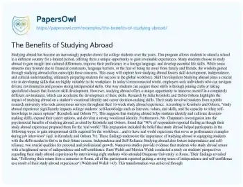 The Benefits of Studying Abroad. (2019, Jun 01). Retrieved from https://hub.papersowl.com/examples/the-benefits-of-studying-abroad/