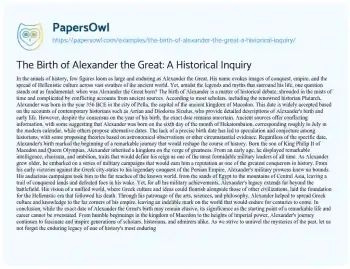 The Birth of Alexander the Great: A Historical Inquiry. (2024, May 12). Retrieved from https://hub.papersowl.com/examples/the-birth-of-alexander-the-great-a-historical-inquiry/