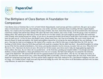 The Birthplace of Clara Barton: A Foundation for Compassion. (2024, Jun 28). Retrieved from https://hub.papersowl.com/examples/the-birthplace-of-clara-barton-a-foundation-for-compassion/