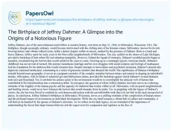 The Birthplace of Jeffrey Dahmer: A Glimpse into the Origins of a Notorious Figure. (2024, Jun 01). Retrieved from https://hub.papersowl.com/examples/the-birthplace-of-jeffrey-dahmer-a-glimpse-into-the-origins-of-a-notorious-figure/