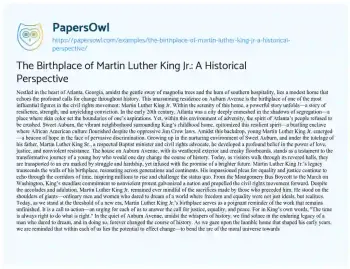 Order now Yet, within this environment of adversity, the spirit of Atlanta’s people refused to be crushed. Sweet Auburn, the vibrant neighborhood surrounding King’s childhood home, epitomized this resilient spirit—a bustling enclave where African American culture flourished despite the oppressive Jim Crow laws.