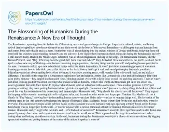 The Blossoming of Humanism During the Renaissance: A New Era of Thought