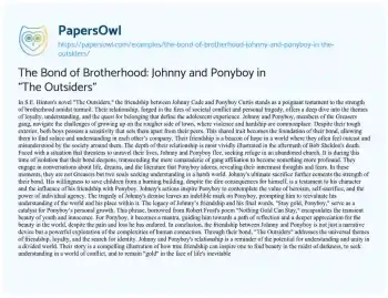 The Bond of Brotherhood: Johnny and Ponyboy in "The Outsiders". (2024, Mar 01). Retrieved from https://hub.papersowl.com/examples/the-bond-of-brotherhood-johnny-and-ponyboy-in-the-outsiders/