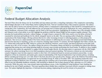 Federal Budget Allocation Analysis. (2021, Oct 18). Retrieved from https://hub.papersowl.com/examples/the-book-describing-medicare-and-other-social-programs/