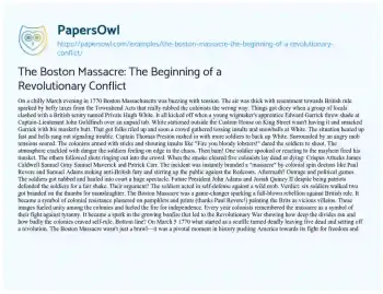 The Boston Massacre: The Beginning of a Revolutionary Conflict. (2024, Jul 06). Retrieved from https://hub.papersowl.com/examples/the-boston-massacre-the-beginning-of-a-revolutionary-conflict/