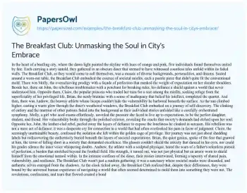 The Breakfast Club: Unmasking the Soul in City's Embrace. (2024, Feb 20). Retrieved from https://hub.papersowl.com/examples/the-breakfast-club-unmasking-the-soul-in-citys-embrace/