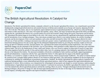 The British Agricultural Revolution: A Catalyst for Change. (2021, Mar 18). Retrieved from https://hub.papersowl.com/examples/the-british-agricultural-revolution/
