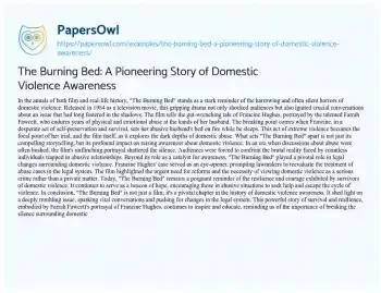 The Burning Bed: A Pioneering Story of Domestic Violence Awareness. (2024, Feb 01). Retrieved from https://hub.papersowl.com/examples/the-burning-bed-a-pioneering-story-of-domestic-violence-awareness/