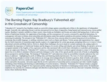 The Burning Pages: Ray Bradbury's 'Fahrenheit 451' in the Crosshairs of Censorship. (2023, Dec 15). Retrieved from https://hub.papersowl.com/examples/the-burning-pages-ray-bradburys-fahrenheit-451-in-the-crosshairs-of-censorship/