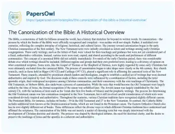 The Canonization of the Bible: A Historical Overview. (2024, Jul 21). Retrieved from https://hub.papersowl.com/examples/the-canonization-of-the-bible-a-historical-overview/