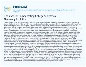 This essay will explore these reasons in depth, providing evidence and analysis to support the thesis that college athletes should indeed be paid.