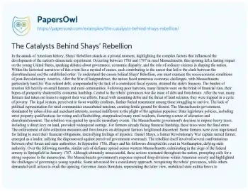 The Catalysts Behind Shays' Rebellion. (2024, May 21). Retrieved from https://hub.papersowl.com/examples/the-catalysts-behind-shays-rebellion/